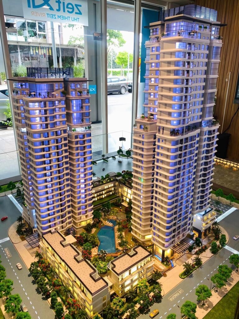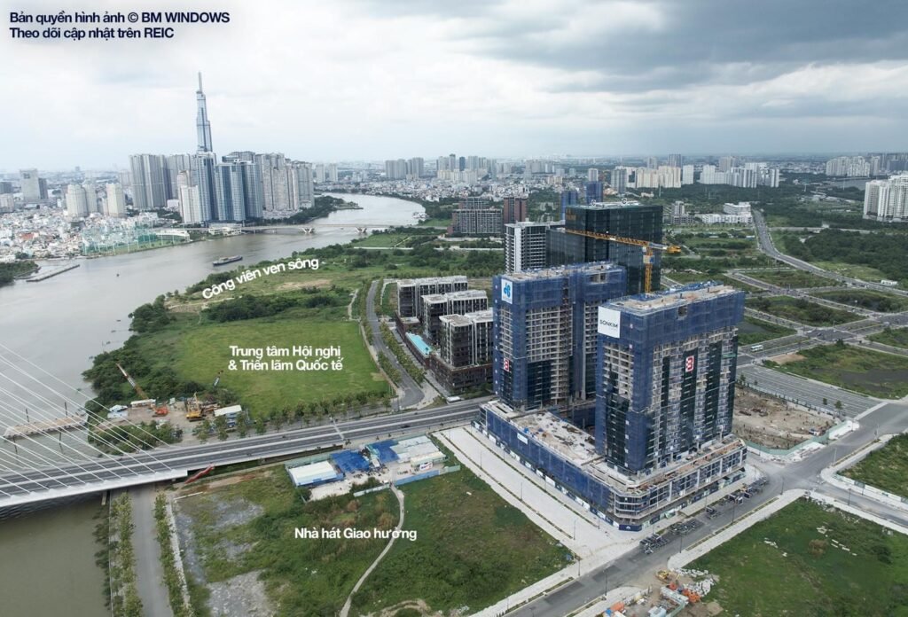 Thủ Thiêm Zeit River, một dự án đã có giấy phép xây dựng, đã có giấy phép bán hàng, đã xây đến tầng 27/32. Một dự án với tông màu trắng rất Tây và sang của chủ đầu tư GS, Hàn Quốc. GS là tập đoàn hàng đầu HQ cho dòng căn hộ cao cấp tại Hàn.